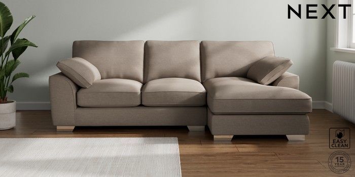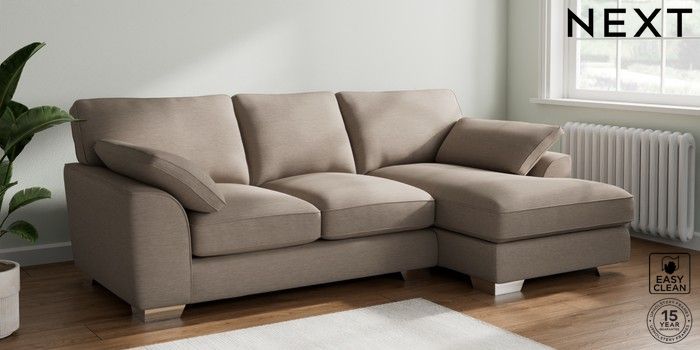 7.3.1 Buy Stamford Grand Relaxed Sit Medium Sofa Chaise - Right Hand Fine Chenille Easy Clean Mid Taupe Brown Large Square Angle - Chrome Metal from the Next UK online shop Click here to use our accessible website