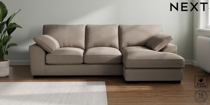 7.3.1 Buy Stamford Grand Relaxed Sit Medium Sofa Chaise - Right Hand Fine Chenille Easy Clean Mid Taupe Brown Large Square Angle - Dark from the Next UK online shop Click here to use our accessible website