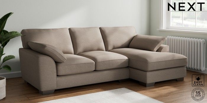 7.3.1 Buy Stamford Grand Relaxed Sit Medium Sofa Chaise - Right Hand Fine Chenille Easy Clean Mid Taupe Brown Large Square Angle - Gunmetal from the Next UK online shop Click here to use our accessible website