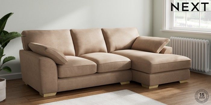 7.2.10 Buy Stamford Grand Relaxed Sit Medium Sofa Chaise - Right Hand Luxe Chenille Mid Natural Large Square Angle - Light from the Next UK online shop Click here to use our accessible website