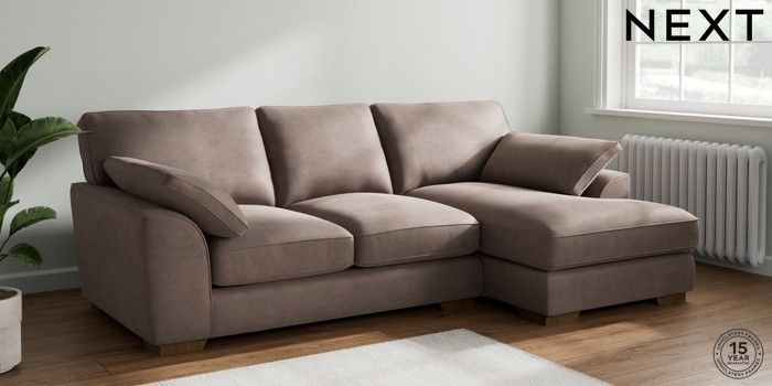 7.2.10 Buy Stamford Grand Relaxed Sit Medium Sofa Chaise - Right Hand Luxe Chenille Mink Brown Large Square Angle - Mid from the Next UK online shop Click here to use our accessible website