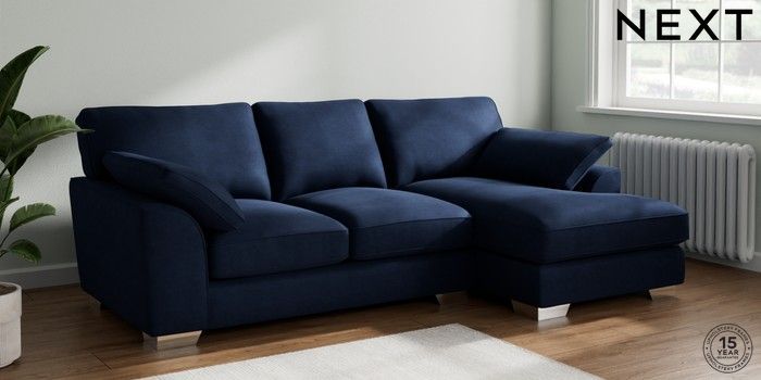 7.3.1 Buy Stamford Grand Relaxed Sit Medium Sofa Chaise - Right Hand Luxe Chenille Navy Blue Large Square Angle - Chrome Metal from the Next UK online shop Click here to use our accessible website