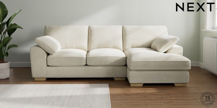 7.0.3 Buy Stamford Grand Relaxed Sit Medium Sofa Chaise - Right Hand Luxe Chenille Oyster Large Square Angle - Light from the Next UK online shop Click here to use our accessible website