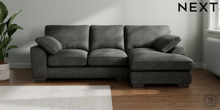 7.3.1 Buy Stamford Grand Relaxed Sit Medium Sofa Chaise - Right Hand Monza Faux Leather Easy Clean Dark Grey Large Square Angle - Gunmetal from the Next UK online shop Click here to use our accessible website