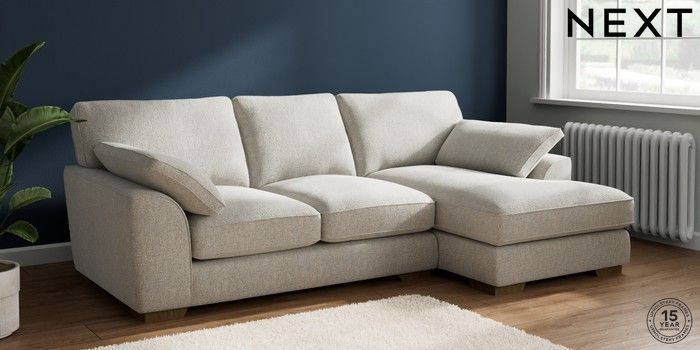 7.2.6 Buy Stamford Grand Relaxed Sit Medium Sofa Chaise - Right Hand Multi Weave Light Blue Large Square Angle - Mid from the Next UK online shop Click here to use our accessible website