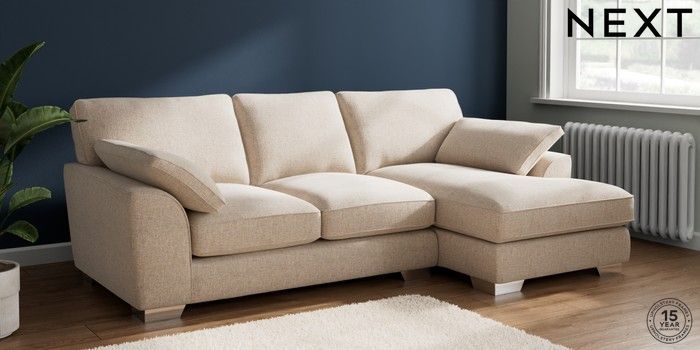 7.2.6 Buy Stamford Grand Relaxed Sit Medium Sofa Chaise - Right Hand Multi Weave Mid Natural Large Square Angle - Chrome Metal from the Next UK online shop Click here to use our accessible website