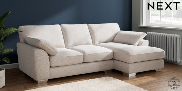 7.2.6 Buy Stamford Grand Relaxed Sit Medium Sofa Chaise - Right Hand Multi Weave Oyster Large Square Angle - Chrome Metal from the Next UK online shop Click here to use our accessible website