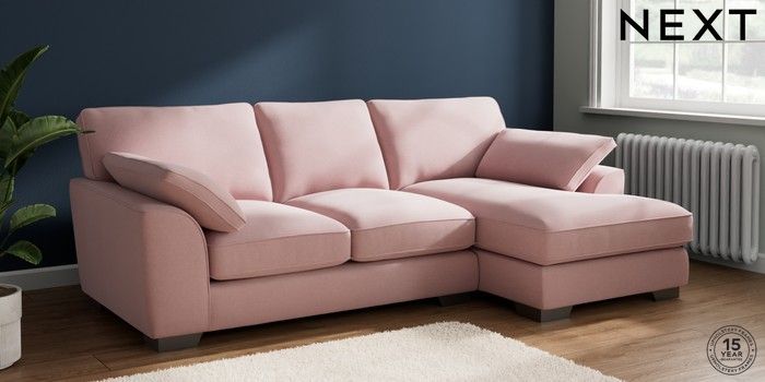 7.3.1 Buy Stamford Grand Relaxed Sit Medium Sofa Chaise - Right Hand Natural Mix Light Rose Pink Large Square Angle - Gunmetal from the Next UK online shop Click here to use our accessible website