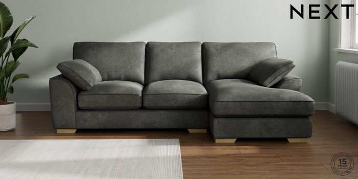 7.3.1 Buy Stamford Grand Relaxed Sit Medium Sofa Chaise - Right Hand Plush Chenille Dark Grey Large Square Angle - Light from the Next UK online shop