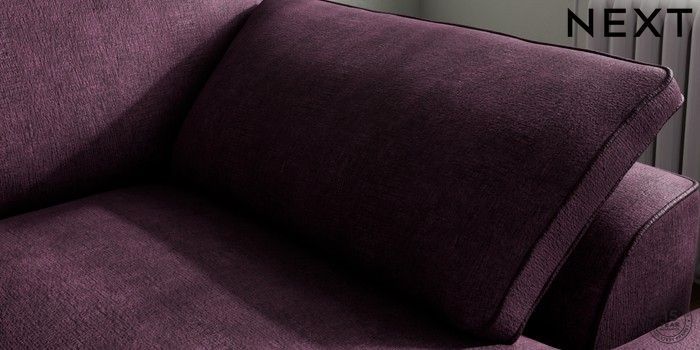 7.3.1 Buy Stamford Grand Relaxed Sit Medium Sofa Chaise - Right Hand Plush Chenille Dark Plum Purple Large Square Angle - Brushed Brass from the Next UK online shop Click here to use our accessible website