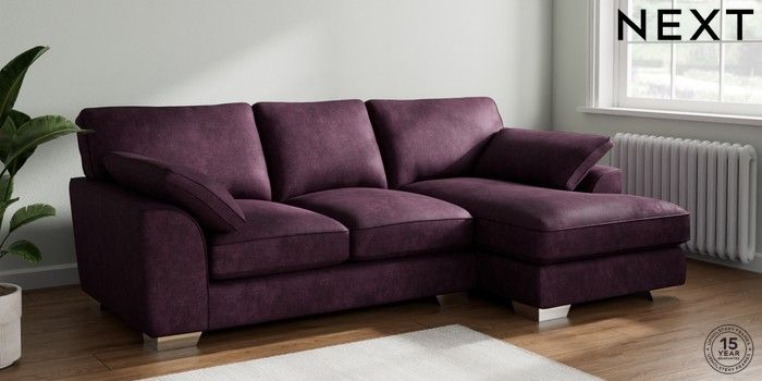7.3.1 Buy Stamford Grand Relaxed Sit Medium Sofa Chaise - Right Hand Plush Chenille Dark Plum Purple Large Square Angle - Chrome Metal from the Next UK online shop Click here to use our accessible website
