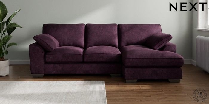 7.3.1 Buy Stamford Grand Relaxed Sit Medium Sofa Chaise - Right Hand Plush Chenille Dark Plum Purple Large Square Angle - Gunmetal from the Next UK online shop Click here to use our accessible website