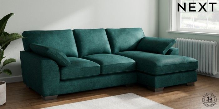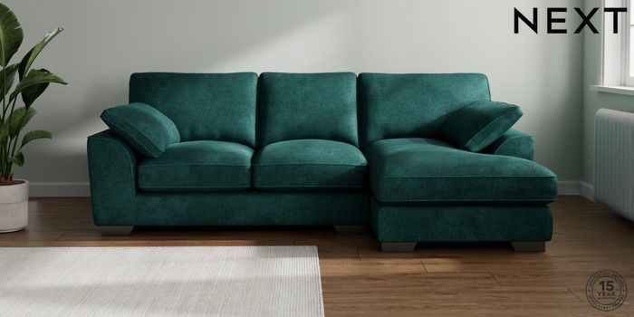 7.3.1 Buy Stamford Grand Relaxed Sit Medium Sofa Chaise - Right Hand Plush Chenille Dark Teal Green Large Square Angle - Gunmetal from the Next UK online shop Click here to use our accessible website