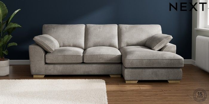 7.3.1 Buy Stamford Grand Relaxed Sit Medium Sofa Chaise - Right Hand Plush Chenille Light Grey Large Square Angle - Light from the Next UK online shop