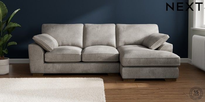 7.3.1 Buy Stamford Grand Relaxed Sit Medium Sofa Chaise - Right Hand Plush Chenille Light Grey Large Square Angle - Mid from the Next UK online shop