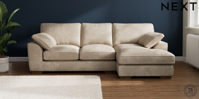 7.3.1 Buy Stamford Grand Relaxed Sit Medium Sofa Chaise - Right Hand Plush Chenille Light Natural Large Square Angle - Mid from the Next UK online shop