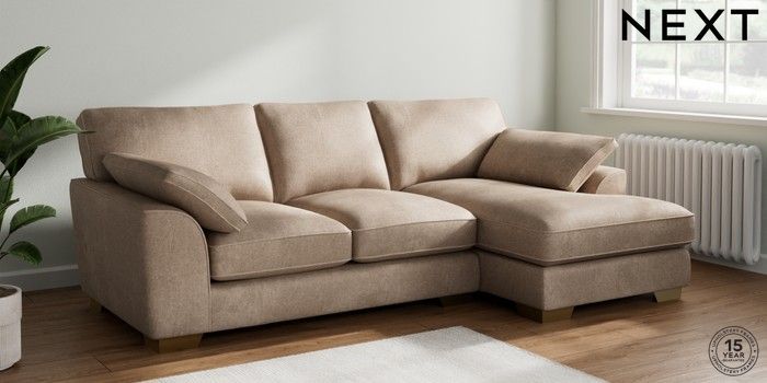 7.2.10 Buy Stamford Grand Relaxed Sit Medium Sofa Chaise - Right Hand Plush Chenille Mid Natural Large Square Angle - Brushed Brass from the Next UK online shop Click here to use our accessible website