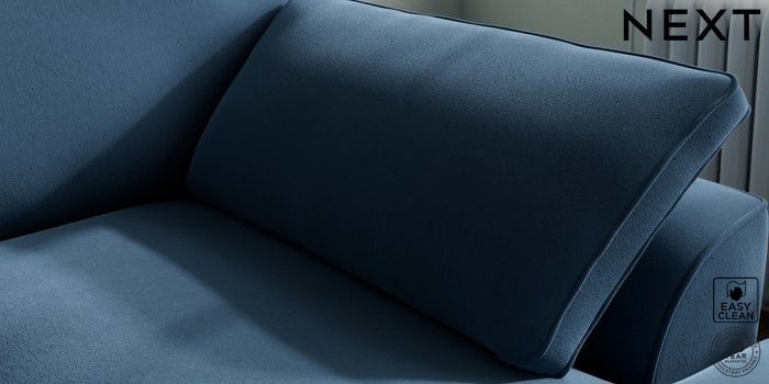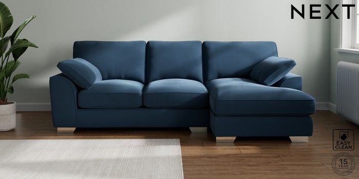 7.3.1 Buy Stamford Grand Relaxed Sit Medium Sofa Chaise - Right Hand Plush Velvet Easy Clean Airforce Blue Large Square Angle - Chrome Metal from the Next UK online shop Click here to use our accessible website
