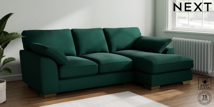 7.3.1 Buy Stamford Grand Relaxed Sit Medium Sofa Chaise - Right Hand Plush Velvet Easy Clean Bottle Green Large Square Angle - Brushed Brass from the Next UK online shop Click here to use our accessible website