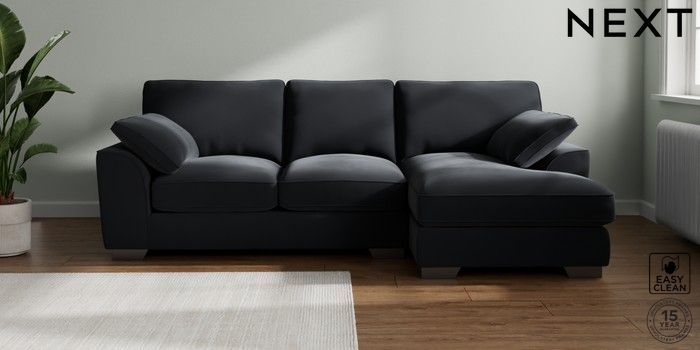 7.3.1 Buy Stamford Grand Relaxed Sit Medium Sofa Chaise - Right Hand Plush Velvet Easy Clean Charcoal Grey Large Square Angle - Gunmetal from the Next UK online shop Click here to use our accessible website