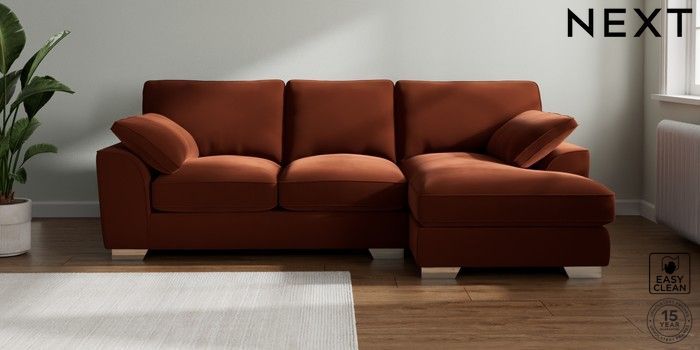 7.3.1 Buy Stamford Grand Relaxed Sit Medium Sofa Chaise - Right Hand Plush Velvet Easy Clean Ginger Orange Large Square Angle - Chrome Metal from the Next UK online shop Click here to use our accessible website