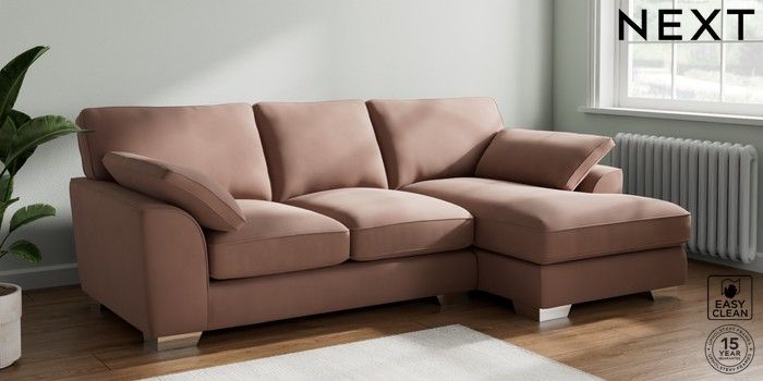 7.3.1 Buy Stamford Grand Relaxed Sit Medium Sofa Chaise - Right Hand Plush Velvet Easy Clean Mid Natural Large Square Angle - Chrome Metal from the Next UK online shop Click here to use our accessible website
