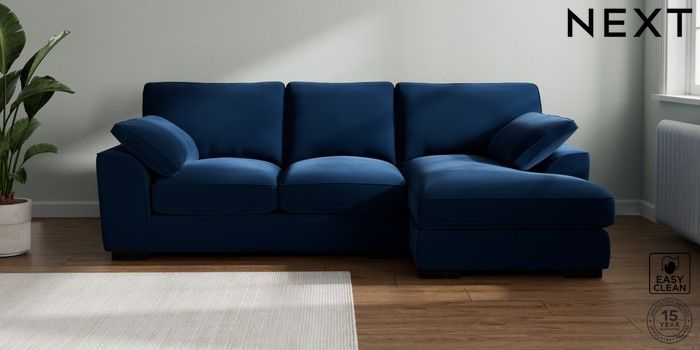 7.3.1 Buy Stamford Grand Relaxed Sit Medium Sofa Chaise - Right Hand Plush Velvet Easy Clean Navy Blue Large Square Angle - Dark from the Next UK online shop Click here to use our accessible website
