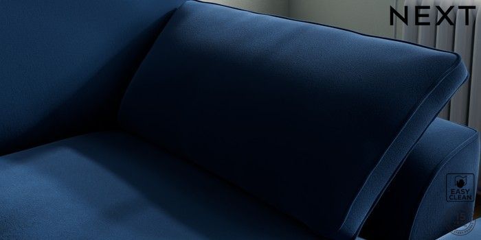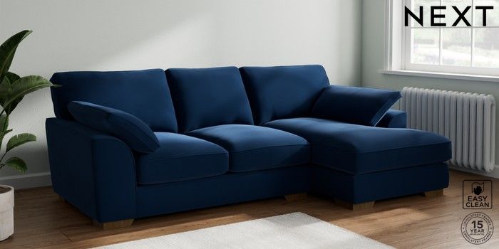 7.3.1 Buy Stamford Grand Relaxed Sit Medium Sofa Chaise - Right Hand Plush Velvet Easy Clean Navy Blue Large Square Angle - Mid from the Next UK online shop Click here to use our accessible website