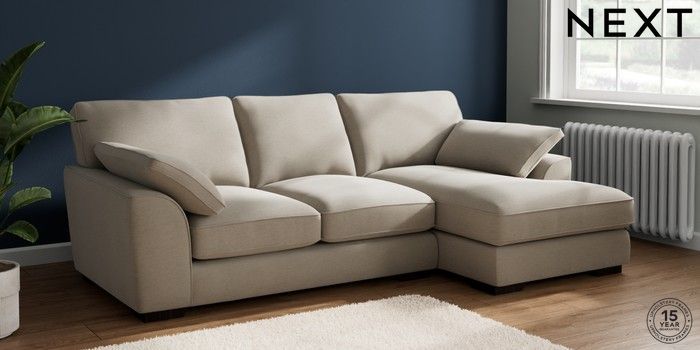 7.2.10 Buy Stamford Grand Relaxed Sit Medium Sofa Chaise - Right Hand Ripple Chenille Light Natural Large Square Angle - Dark from the Next UK online shop Click here to use our accessible website