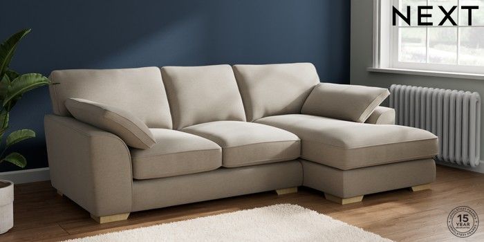 7.2.10 Buy Stamford Grand Relaxed Sit Medium Sofa Chaise - Right Hand Ripple Chenille Light Natural Large Square Angle - Light from the Next UK online shop Click here to use our accessible website