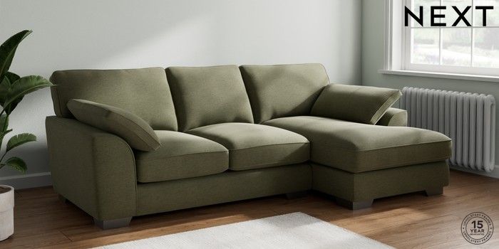 7.3.1 Buy Stamford Grand Relaxed Sit Medium Sofa Chaise - Right Hand Ripple Chenille Mid Moss Green Large Square Angle - Gunmetal from the Next UK online shop Click here to use our accessible website