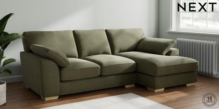 7.2.10 Buy Stamford Grand Relaxed Sit Medium Sofa Chaise - Right Hand Ripple Chenille Mid Moss Green Large Square Angle - Light from the Next UK online shop Click here to use our accessible website