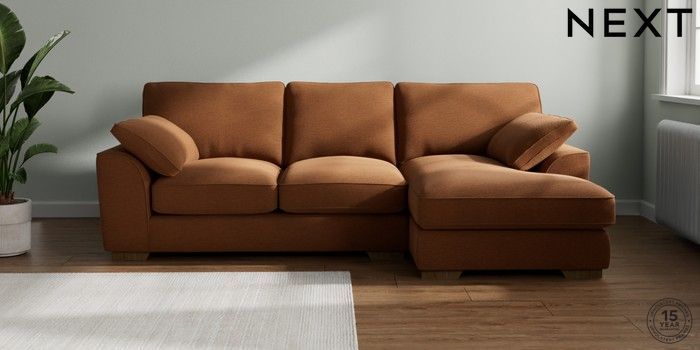 6.12.1 Buy Stamford Grand Relaxed Sit Medium Sofa Chaise - Right Hand Ripple Chenille Mid Rust Brown Large Square Angle - Mid from the Next UK online shop Click here to use our accessible website