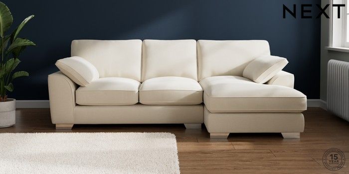 7.3.1 Buy Stamford Grand Relaxed Sit Medium Sofa Chaise - Right Hand Ripple Chenille Oyster Large Square Angle - Chrome Metal from the Next UK online shop Click here to use our accessible website