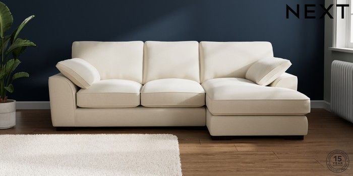 7.3.1 Buy Stamford Grand Relaxed Sit Medium Sofa Chaise - Right Hand Ripple Chenille Oyster Large Square Angle - Dark from the Next UK online shop