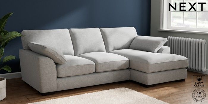 7.2.10 Buy Stamford Grand Relaxed Sit Medium Sofa Chaise - Right Hand Tweedy Blend Easy Clean Light Silver Grey Large Square Angle - Dark from the Next UK online shop Click here to use our accessible website