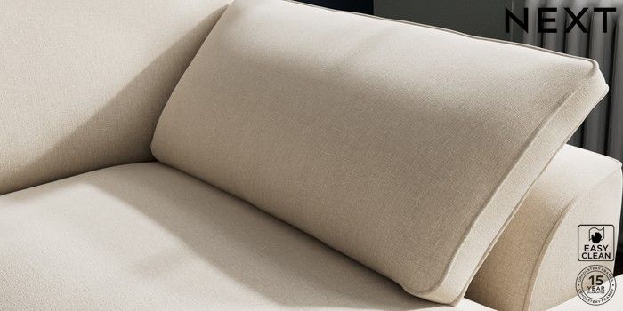 7.3.1 Buy Stamford Grand Relaxed Sit Medium Sofa Chaise - Right Hand Tweedy Blend Easy Clean Oyster Large Square Angle - Brushed Brass from the Next UK online shop Click here to use our accessible website