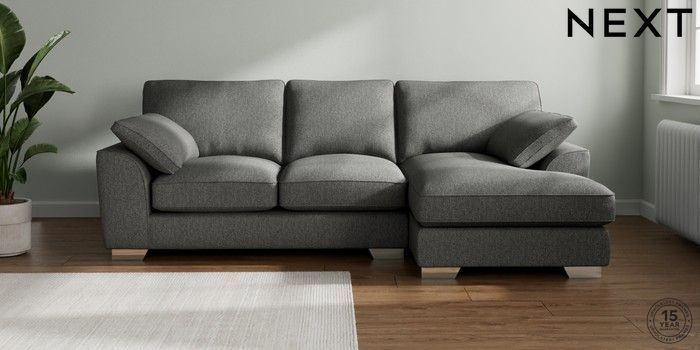 7.3.1 Buy Stamford Grand Relaxed Sit Medium Sofa Chaise - Right Hand Tweedy Chenille Dark Grey Large Square Angle - Chrome Metal from the Next UK online shop Click here to use our accessible website