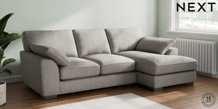 7.3.1 Buy Stamford Grand Relaxed Sit Medium Sofa Chaise - Right Hand Tweedy Chenille Mid Grey Large Square Angle - Gunmetal from the Next UK online shop Click here to use our accessible website