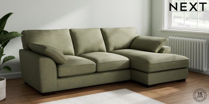 7.3.1 Buy Stamford Grand Relaxed Sit Medium Sofa Chaise - Right Hand Tweedy Chenille Mid Moss Green Large Square Angle - Dark from the Next UK online shop Click here to use our accessible website