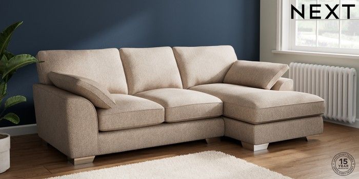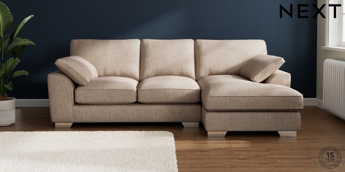 7.3.1 Buy Stamford Grand Relaxed Sit Medium Sofa Chaise - Right Hand Tweedy Chenille Mid Natural Large Square Angle - Chrome Metal from the Next UK online shop Click here to use our accessible website