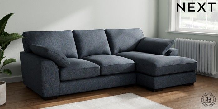 7.3.1 Buy Stamford Grand Relaxed Sit Medium Sofa Chaise - Right Hand Tweedy Chenille Navy Blue Large Square Angle - Dark from the Next UK online shop Click here to use our accessible website