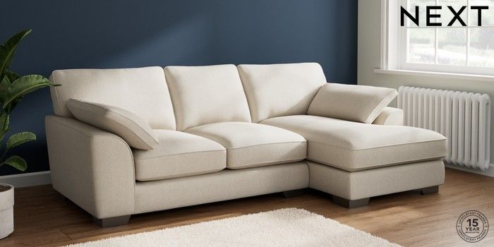 7.3.1 Buy Stamford Grand Relaxed Sit Medium Sofa Chaise - Right Hand Tweedy Chenille Oyster Large Square Angle - Gunmetal from the Next UK online shop Click here to use our accessible website