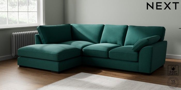 7.2.10 Buy Stamford Grand Relaxed Sit Medium Corner Chaise - Left Hand Fine Chenille Easy Clean Dark Juniper Green Large Square Angle - Dark from the Next UK online shop Click here to use our accessible website