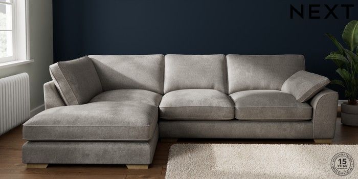 7.3.1 Buy Stamford Grand Relaxed Sit Large Corner Chaise - Left Hand Plush Chenille Light Grey Large Square Angle - Light from the Next UK online shop Click here to use our accessible website