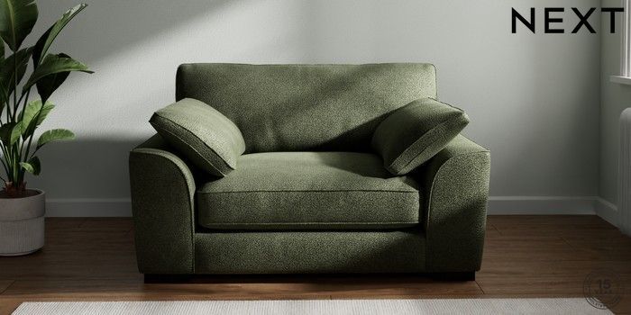 7.3.1 Buy Stamford Grand Relaxed Sit Snuggle Boucle Chenille Dark Moss Green Large Square Angle - Dark from the Next UK online shop Click here to use our accessible website