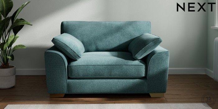 7.3.1 Buy Stamford Grand Relaxed Sit Snuggle Chunky Chenille Mid Teal Green Large Square Angle - Brushed Brass from the Next UK online shop Click here to use our accessible website