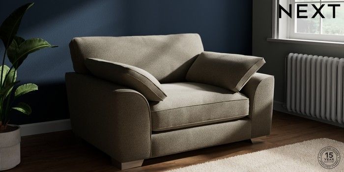 7.3.1 Buy Stamford Grand Relaxed Sit Snuggle Chunky Marl Light Olive Green Large Square Angle - Chrome Metal from the Next UK online shop Click here to use our accessible website