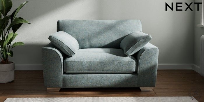 7.3.1 Buy Stamford Grand Relaxed Sit Snuggle Chunky Marl Mid Blue Large Square Angle - Chrome Metal from the Next UK online shop Click here to use our accessible website