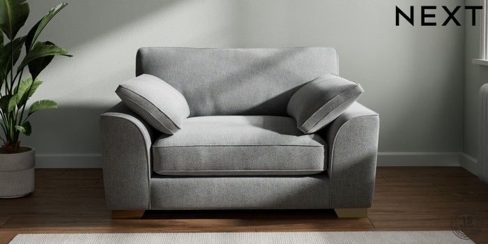 7.2.10 Buy Stamford Grand Relaxed Sit Snuggle Chunky Marl Mid Grey Large Square Angle - Brushed Brass from the Next UK online shop Click here to use our accessible website